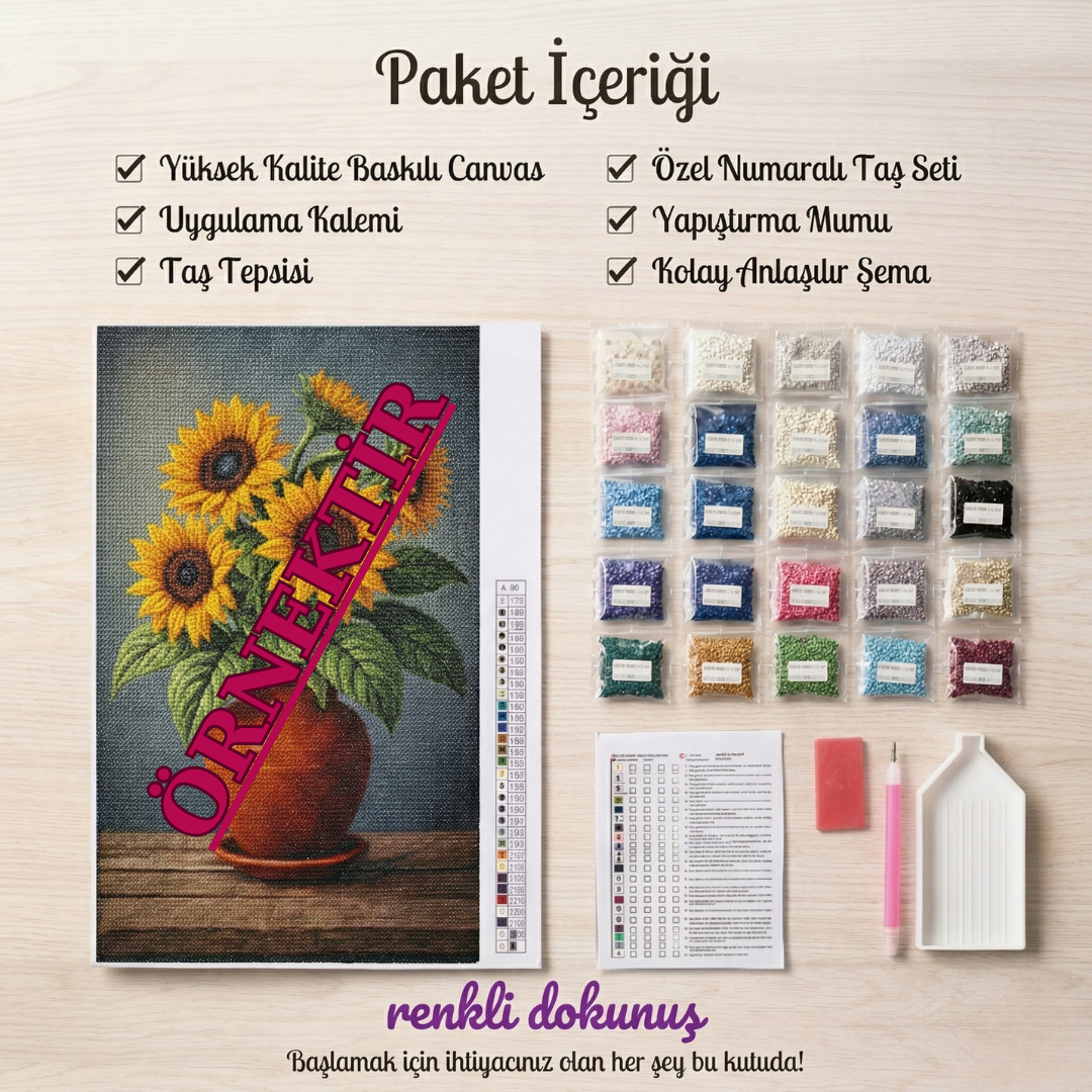 Seçtiğiniz tasarım, tuval üzerinde renk bölümlerine ayrılmıştır. Her renge bir numara atanmıştır. Başlamak istediğiniz rengi seçin.